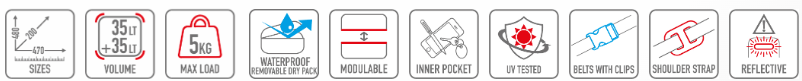 • Sistema de cierre a roll-top para garantizar la impermeabilidad.