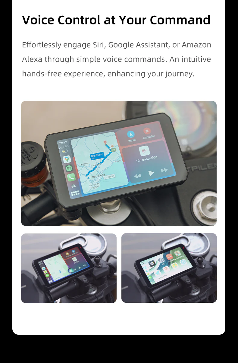 AIO-5 Play es un sistema de infoentretenimiento de última generación diseñado para motoristas que valoran la sencillez y el rendimiento. Diseñado para ofrecer la mejor experiencia CarPlay y Android Auto, este elegante dispositivo integra navegación, entretenimiento y conectividad de la forma más sencilla. Accede a tus apps favoritas, transmite música y obtén actualizaciones del tráfico en tiempo real con facilidad, todo ello sin perder la concentración en la carretera. Con su pantalla táctil de alta resolución y sus controles minimalistas, el AIO-5 Play Play ofrece una conducción ágil y sin distracciones sin comprometer la seguridad.